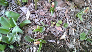 昨日は気温が20度を超えたのに、今日は強風が吹いたり、雪が舞ったりしています。昨日咲いたと思われる早咲きチューリップですが、寒そうです。